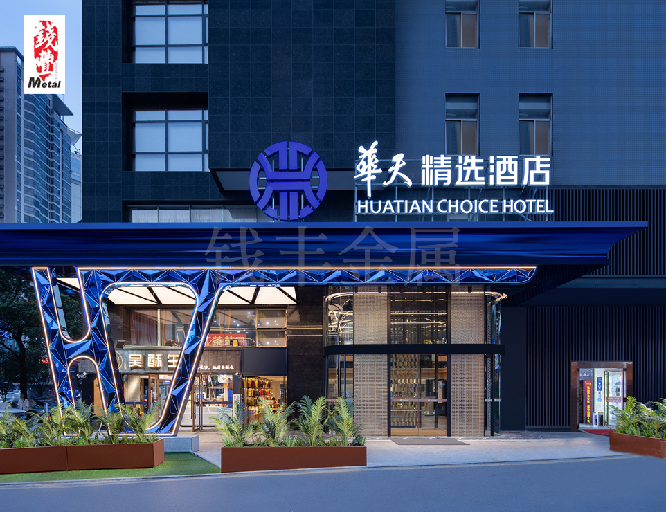 酒店外墻:不銹鋼也可以用于室外裝修。例如,在雨棚、幕墻等位置可以使用不銹鋼蜂窩板來(lái)裝飾,輕質(zhì)化、ga 高強(qiáng)度、防火防潮,還能增加功能性和美觀性。