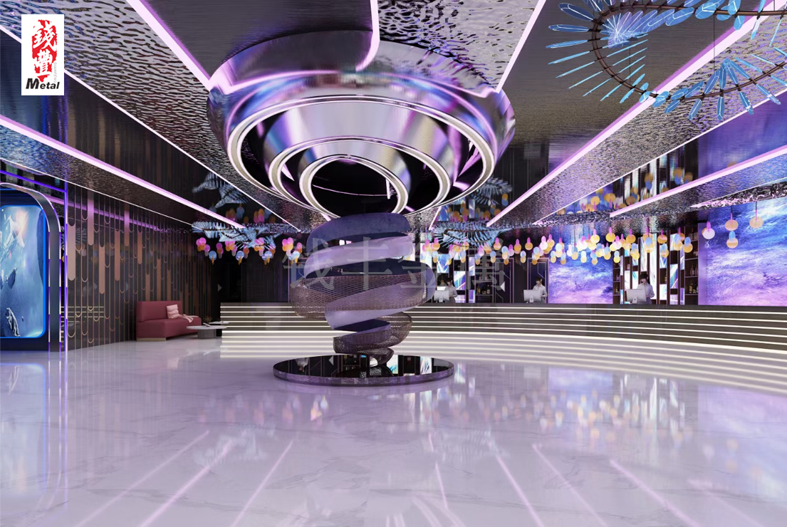 不銹鋼水波紋板具有其獨(dú)特的設(shè)計(jì)風(fēng)格和優(yōu)勢(shì),為KTV的裝飾創(chuàng)造了更多可能性。首先,不銹鋼材質(zhì)的選用保證了板材的耐久性和良好的防腐性能,使其能夠經(jīng)受住長(zhǎng)時(shí)間的使用和清潔,同時(shí)還能保持表面的光潔度,提供給消費(fèi)者一個(gè)整潔舒適的環(huán)境。